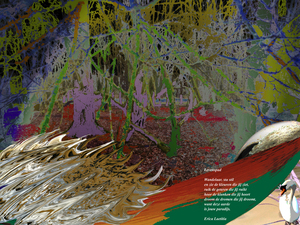 2020In dit zelfportret geef ik in de poëtische vorm die bij mijn werk past mijn passies weer : taal, fotografie, natuur en cultuur (detail van een zogenaamde stavkirke vanwege mijn liefde voor Noorwegen). De foto wordt afgedrukt op aluminium, canvas of een ander materiaal en voorzien van een ophangsysteem. Maat en prijs in overleg.