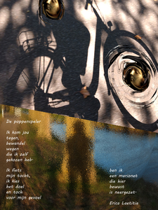 2018Hoe vaak heb ik niet het gevoel dat ik niet zomaar iemand ontmoet? Hoe vaak blijkt niet achteraf dat wat ongunstig leek juist deuren heeft geopend? Wie zorgt ervoor dat ik doe wat ik doe? Ikzelf of ben ik een marionet in een groot poppenspel? De foto wordt afgedrukt op aluminium, canvas of een ander materiaal en voorzien van een ophangsysteem. Maat en prijs in overleg.